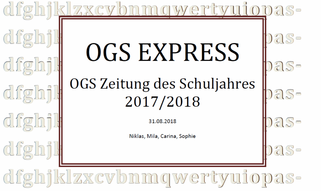 Die erste Auflage der neuen OGS Zeitung ist fertig und steht hier zum Download bereit. Unsere Top Redakteure Niklas, Mila, Carina und Sophie haben sich richtig mühe gegeben, um uns auf dem laufenden zu halten. Ein wunderschöner Einblick in die Welt der Offenen Ganztagsschule und ihrer AGs. Auch die Witze sind super, also schaut doch mal rein!