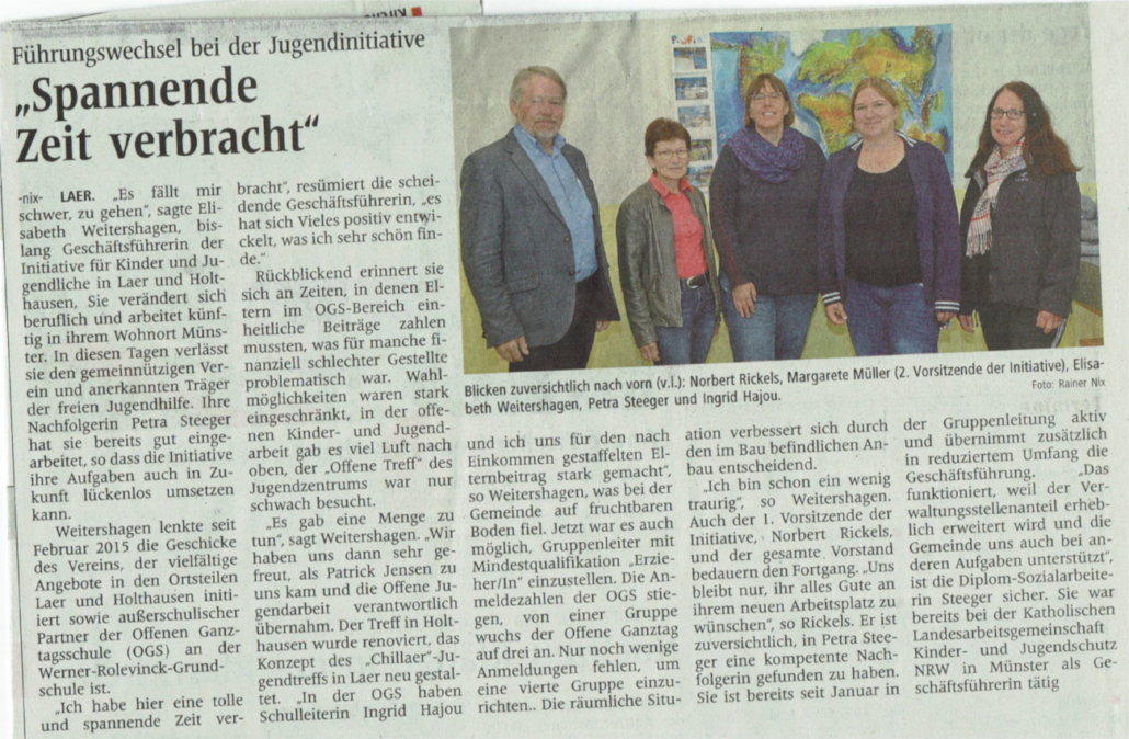 Führungswechsel bei der Initiative für Kinder und Jugendliche in Laer und Holthausen e.V.