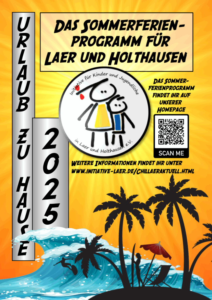 Die Initiative für Kinder und Jugendliche organisiert auch in diesem Jahr wieder das bunte Sommerferienprogramm – gemeinsam mit vielen engagierten Bürgerinnen und Bürgern aus Laer und Holthausen, Vereinen sowie Einzelpersonen.